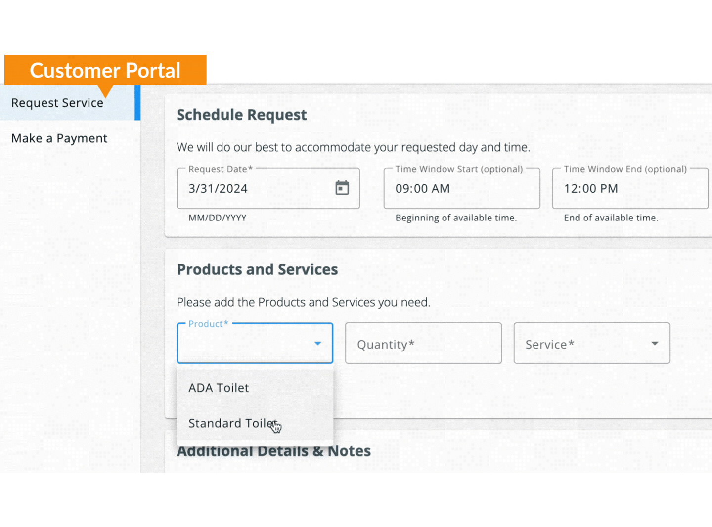 Your customer decides they want to order additional services in the middle of the night. Instead of calling you, they log into their customer portal and request the service themselves. They can also: