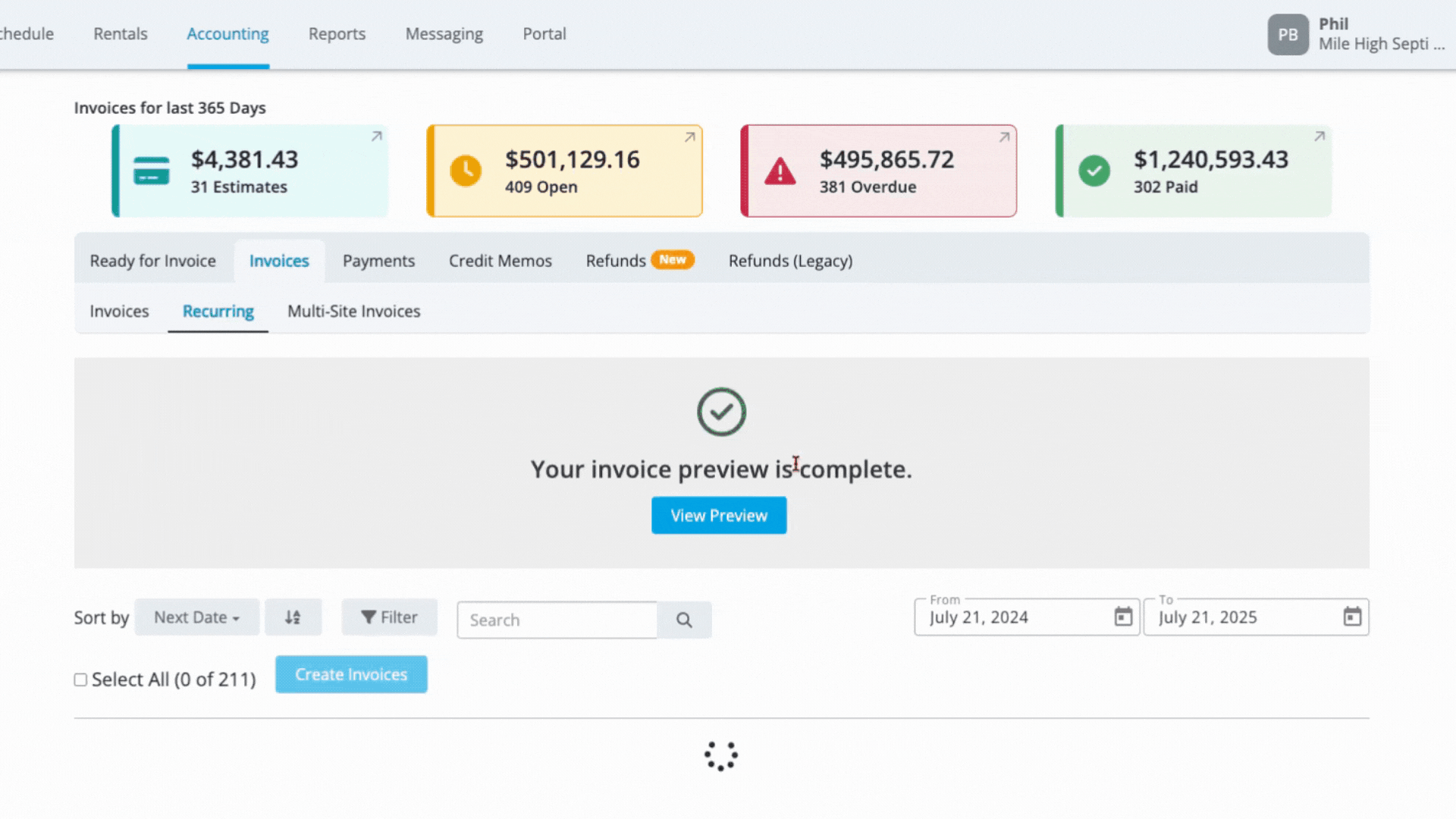 From one screen your billing person can send out all of your recurring invoices, EVERY DAY, with the click of a button. And you'll: